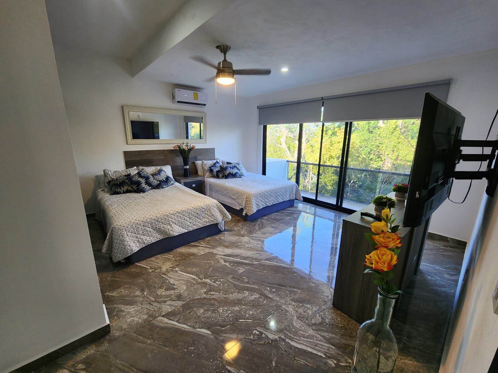 2 recámaras independientes, cada una con baño completo, walking closet y balcón.