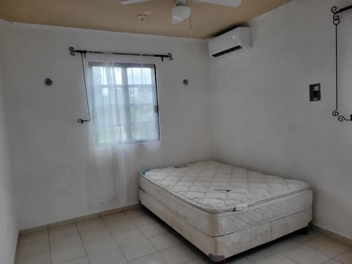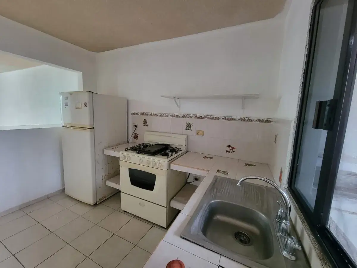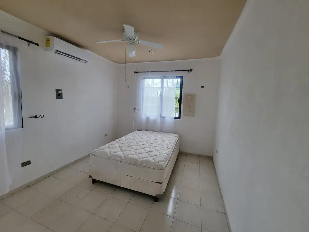Departamento ubicado en un edificio de dos niveles, con fachada de estilo tradicional y acceso principal desde la planta baja. El entorno exterior cuenta con áreas verdes y espacio para estacionamiento, brindando comodidad y funcionalidad. El interior del departamento presenta un diseño sencillo, con pisos de cerámica y paredes en tonos claros que favorecen la iluminación natural. El área de sala-comedor es amplia y conecta directamente con la cocina, la cual está equipada con estufa, refrigerador y fregadero, además de contar con ventilación natural gracias a una ventana y acceso a un área exterior. La recámara principal dispone de cama, ventilador de techo y aire acondicionado, ofreciendo un ambiente adecuado para el descanso. Las ventanas cuentan con cortinas y protecciones, aportando privacidad y seguridad. Este departamento es una opción práctica para quienes buscan un espacio funcional en un entorno residencial.
