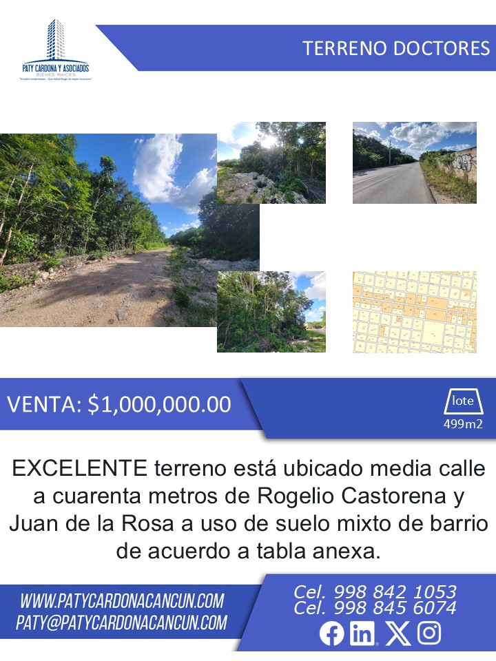 EXCELENTE terreno está ubicado media calle a 40 metros de Rogelio Castorena y Juan de la Rosa, a uso de suelo mixto de barrio de acuerdo a tabla anexa.